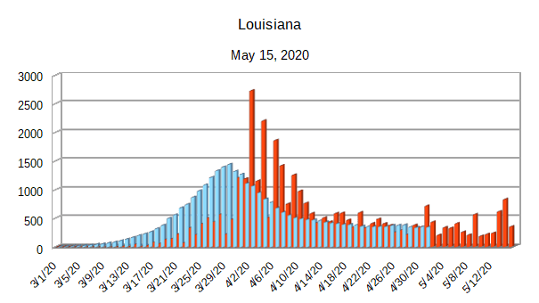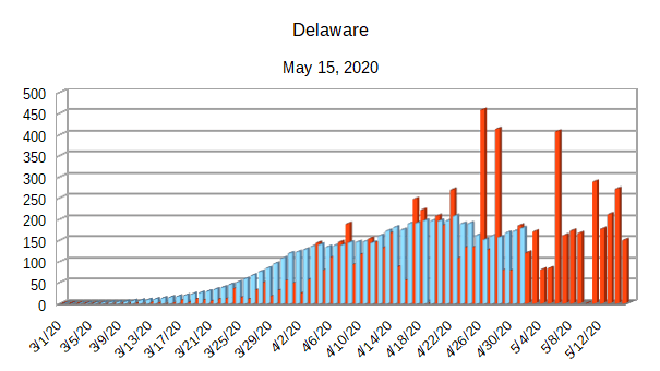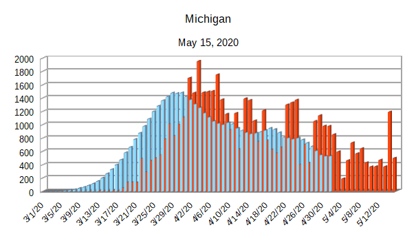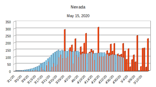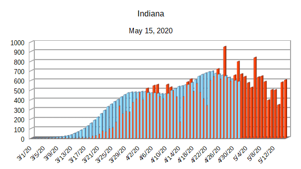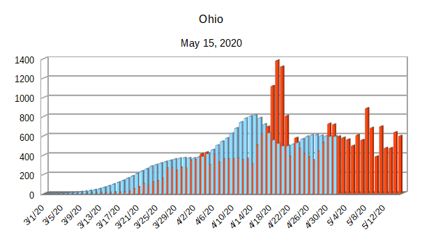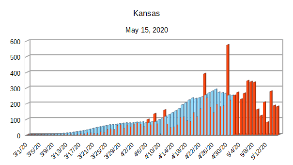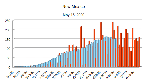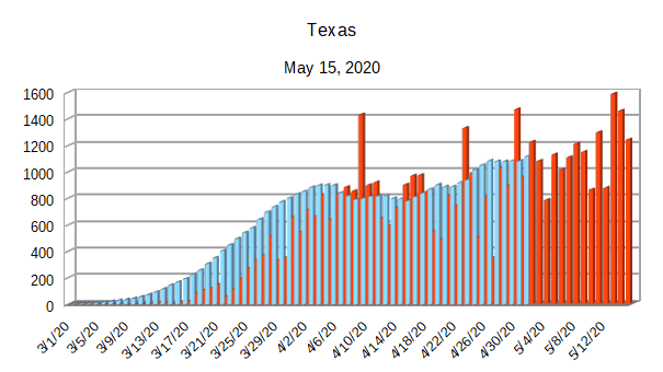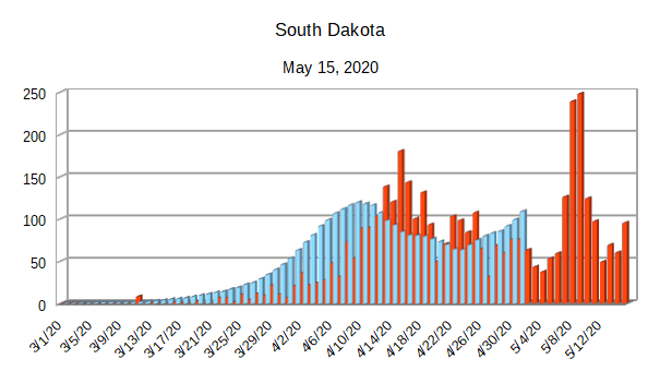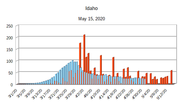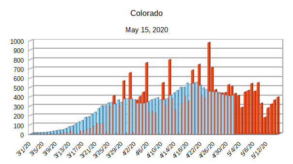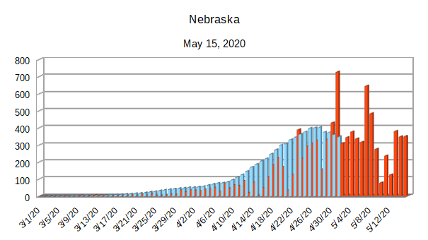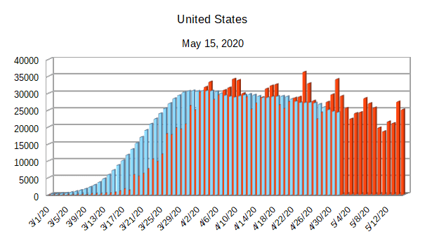 The Covid-19 graphs have been made using the dataset provided by the Center for Systems Science and Engineering (CSSE) at Johns Hopkins University at their GitHub page. The data used end on May 15, 2020 for the United States. In addition to the state and federal graphs, I want to include a project that I have been working on.