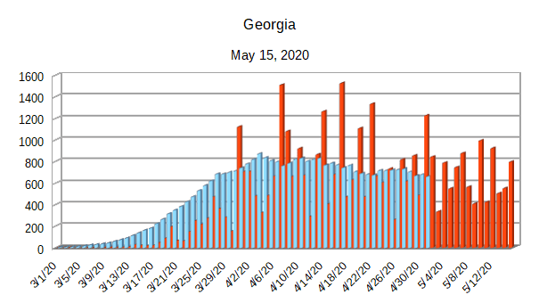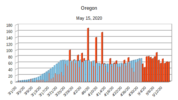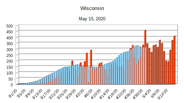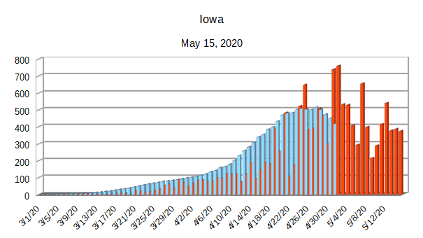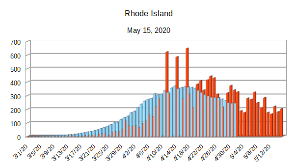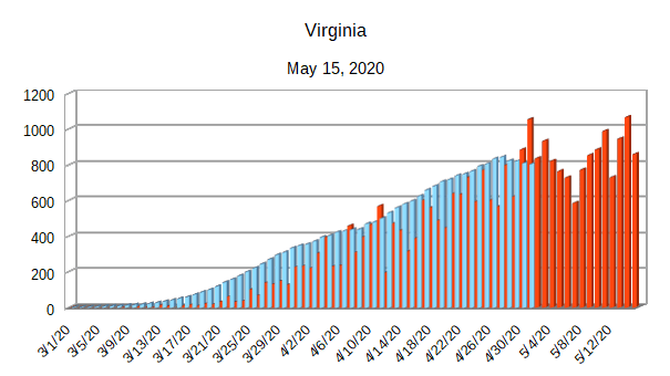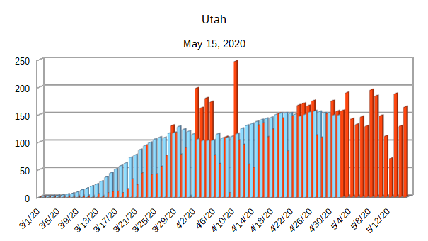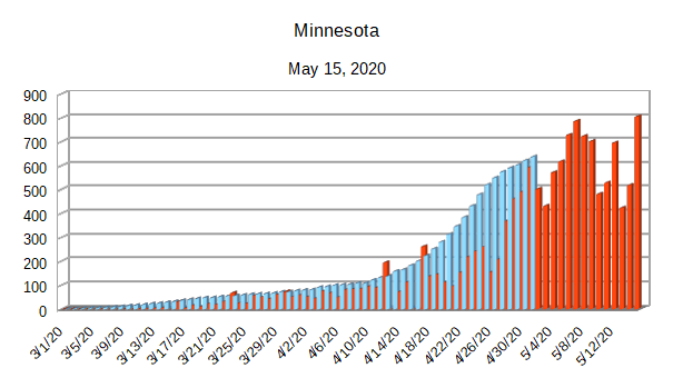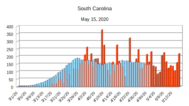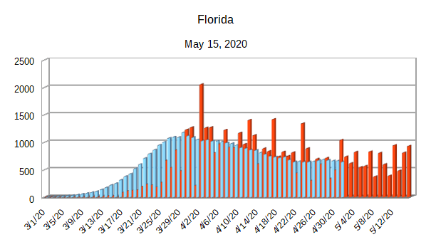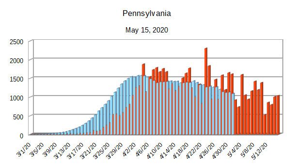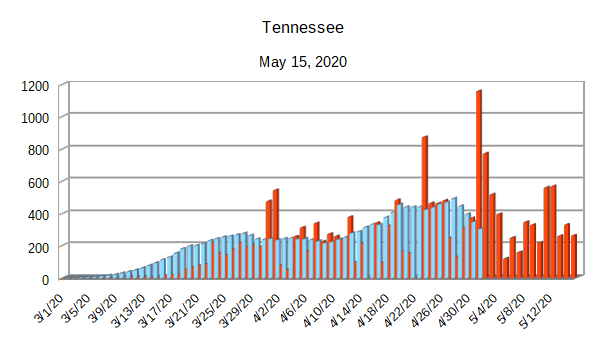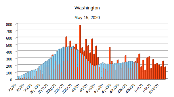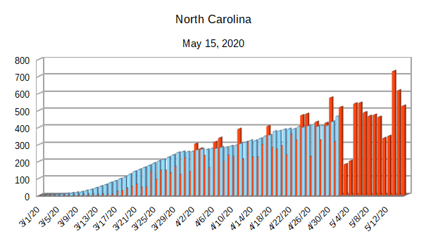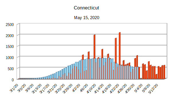 The Covid-19 graphs have been made using the dataset provided by the Center for Systems Science and Engineering (CSSE) at Johns Hopkins University at their GitHub page. The data used end on May 15, 2020 for the United States. In addition to the state and federal graphs, I want to include a project that I have been working on.