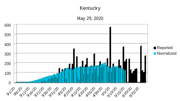 This brings to mind a second thing I have been watching out for. It is possible that, because of the warm and humid weather, covid-19 is being kept partially in check through the late spring, summer, and early fall. If that turns out to be the case, then when conditions are again right, we can expect a return to geometric growth unless we take drastic actions to keep the spread in check.